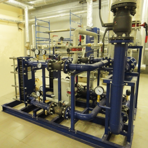 Комплектный блок системы ГВС – продукт компании «Ридан», изготавливаемый индивидуально под заказ для конкретного объекта, выполняет передачу тепловой энергии от внешних теплосетей к системе горячего водоснабжения и позволяет осуществлять автоматическое управление параметрами теплоносителя данной системы. В состав блока входят модули и узлы, пластинчатые теплообменники и насосы, система автоматического регулирования и управления, КИП, запорная и регулирующая арматура.