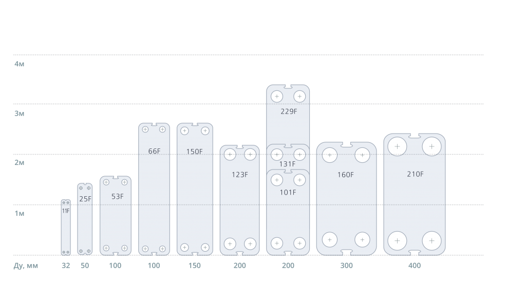 В типоразмерном ряду разборных пластинчатых теплообменников «Ридан» серии free flow появилась новинка — уникальный на рынке типоразмер НН210F с присоединением Ду400.