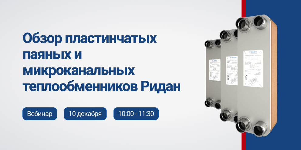 Расскажем подробно о линейке пластинчатых паяных и микроканальных теплообменников Ридан, а также поделимся новостями о программе подбора BPHE Design.